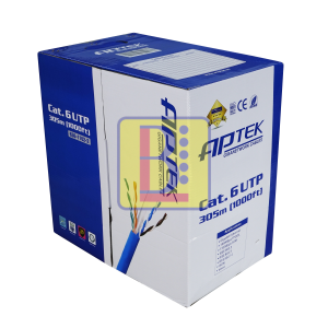 Cáp mạng APTEK CAT.6 U/UTP là loại thường được sử dụng phổ biến hiện nay, nó được nâng cấp so với với loại cáp mạng Cat.5e nhưng vẫn giữ nguyên cấu tạo, thể chất bên trong cáp theo tiêu chuẩn IEEE. APTEK CAT.6 U/UTP được thiết kế bởi 4 cặp dây xoắn với nhau có tác dụng làm giảm độ nhiễu và được bao bọc bởi lớp vỏ nhựa PVC. Được sử dụng trong việc truyền tải dữ liệu tốc độ cao.