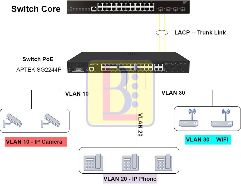 APTEK SG2244P hỗ trợ giao thức Link Aggregation theo 2 phương thức Static và LACP (Link Aggregation Control Protocol).