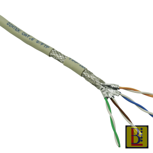 Cáp mạng CAT.6 S-FTP, 4 cặp dây, 23 AWG, bọc nhôm chống nhiễu từng đôi, bọc thêm lưới đồng ở ngoài, cuộn 305m trên rulo nhựa.