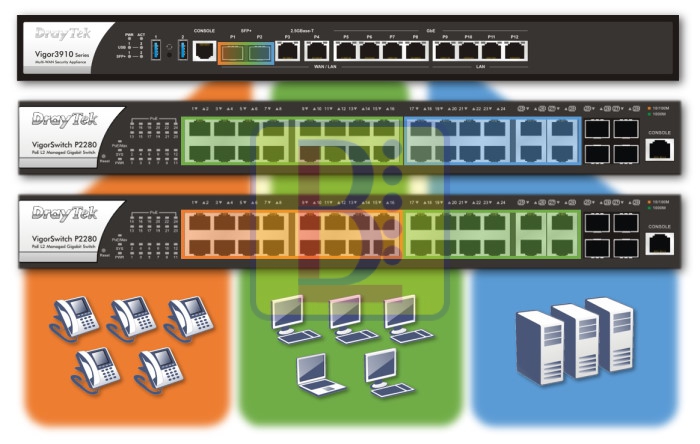 DrayTek Vigor3910 có giao diện mạng cục bộ linh hoạt, router quản lý 50 mạng cục bộ riêng biệt thông qua thẻ VLAN tag 802.1Q. Mỗi mạng cục bộ có thể sử dụng trong chế độ NAT hoặc Routing có thể chứa tối đa 1022 IP. Các mạng con có thể được tách riêng với nhau để đảm nhận các nhiệm vụ khác nhau. Với inter-VLAN routing cho phép các mạng cục bộ giao tiếp với nhau, chia sẻ tài nguyên với nhau.