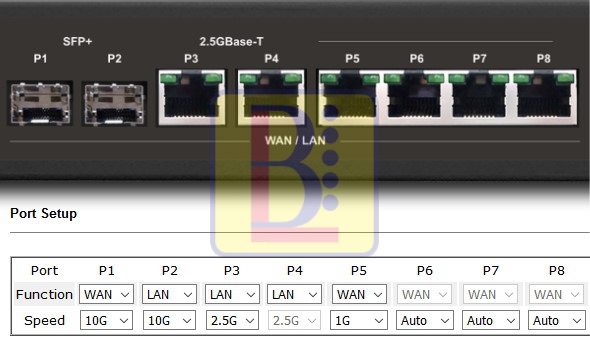 - 2 port 2.5 Gigabit WAN/LAN, RJ45 (cho phép chuyển đổi WAN/LAN linh hoạt).